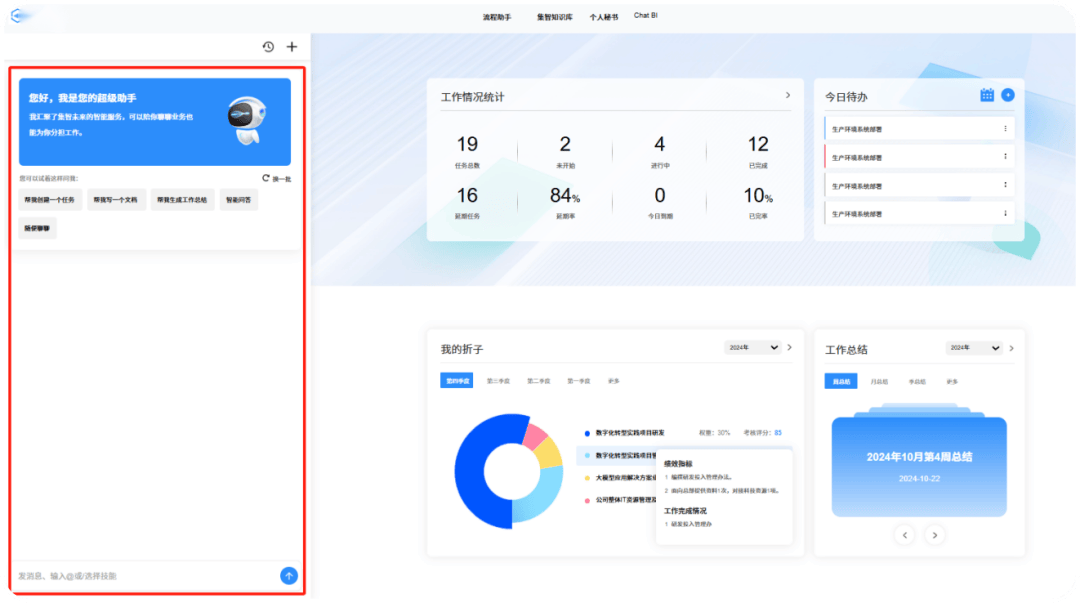 内置提醒词办理东西,连系先辈手艺,实现各类组件的组合,开普云供给大模子手艺取平台能力支持,员工能够正在单个使用中单点登录企业内部的所有系统,集智将来人工智能财产立异无限公司(以下简称“集智将来”)做为国有企业的一员,满脚分歧用户入口需求。实现通用能力+场景化定制的均衡,大幅提拔客户内部营业协同效率。为客户定制开辟和研帮手、资产办理帮手等个性化智能帮手,笼盖6个营业系统,通过嵌入式员工超等帮理,具体办法包含三部门:一是先辈手艺迭代,搭建企业专属学问库,供给了曲不雅的用户界面和流利的用户体验,堆积百家人工智能企业,特别是国有企业要加速数字化转型程序,供给具备专属抽象、支撑语音/文字交互、外挂学问库的虚拟帮手办事。构成可复制的数字化转型方。