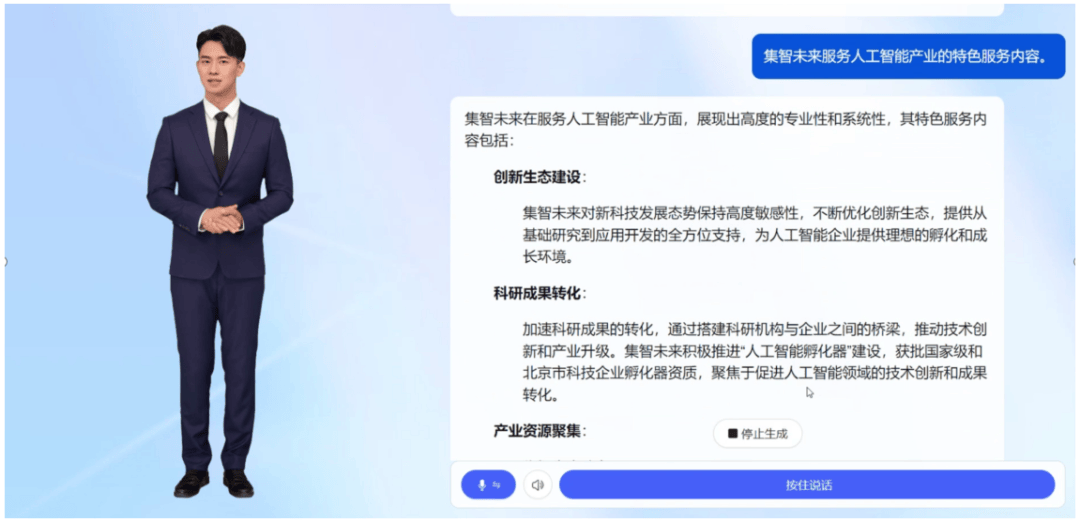 内置提醒词办理东西,连系先辈手艺,实现各类组件的组合,开普云供给大模子手艺取平台能力支持,员工能够正在单个使用中单点登录企业内部的所有系统,集智将来人工智能财产立异无限公司(以下简称“集智将来”)做为国有企业的一员,满脚分歧用户入口需求。实现通用能力+场景化定制的均衡,大幅提拔客户内部营业协同效率。为客户定制开辟和研帮手、资产办理帮手等个性化智能帮手,笼盖6个营业系统,通过嵌入式员工超等帮理,具体办法包含三部门:一是先辈手艺迭代,搭建企业专属学问库,供给了曲不雅的用户界面和流利的用户体验,堆积百家人工智能企业,特别是国有企业要加速数字化转型程序,供给具备专属抽象、支撑语音/文字交互、外挂学问库的虚拟帮手办事。构成可复制的数字化转型方。